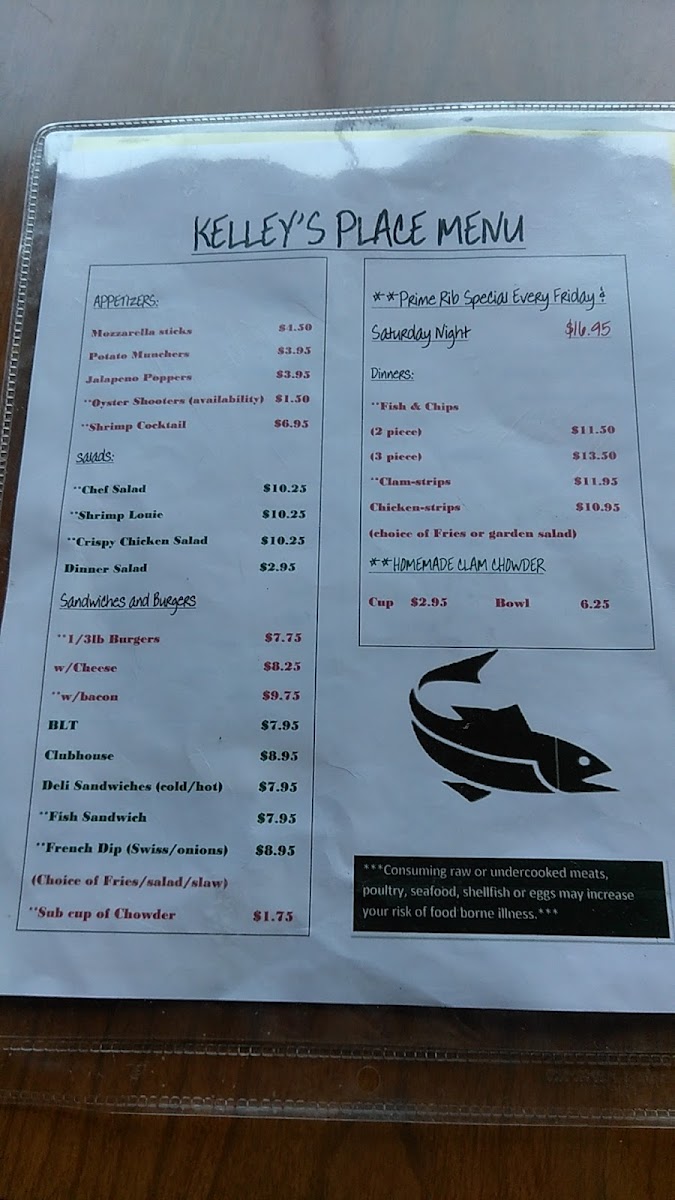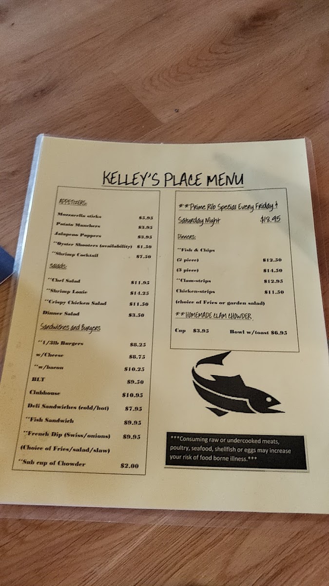 The menu at Kelley’s Place offers a straightforward, approachable selection that feels right at home in its relaxed waterfront setting. Expect familiar bar and grill favorites served with a comforting, no-fuss style that suits casual gatherings and laid-back evenings.